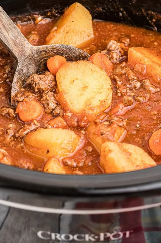 Slow Cooker Poor Man’s Stew is a budget-friendly favorite packed with ground beef and veggies.
