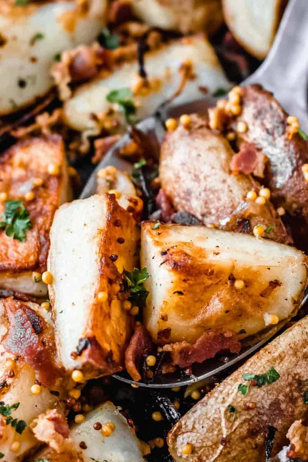 Bacon Roasted Potatoes are crispy on the outside and fluffy on the inside.