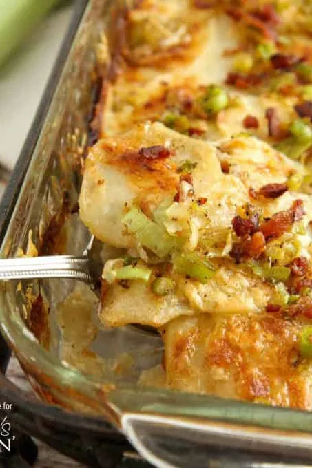 Potatoes Au Gratin with Bacon and Leeks is a creamy, cheesy side dish packed with flavor.