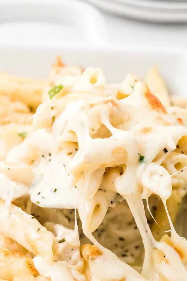 Chicken Alfredo Bake is a creamy, cheesy pasta casserole that’s easy to make and perfect for busy weeknights.