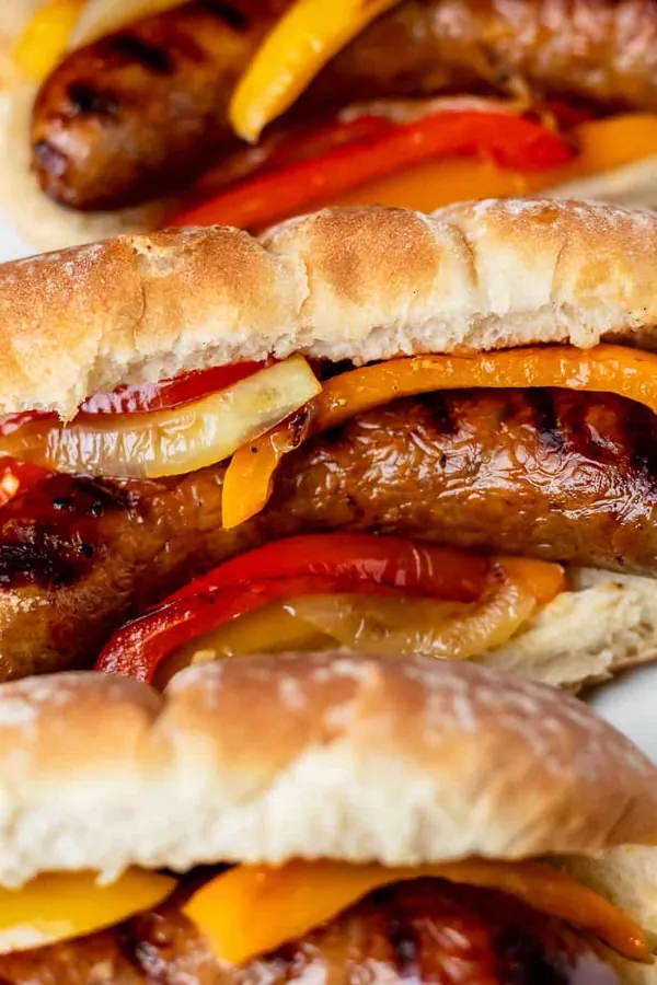Grilled Sausage and Peppers Sandwiches are a hearty, colorful summer favorite.