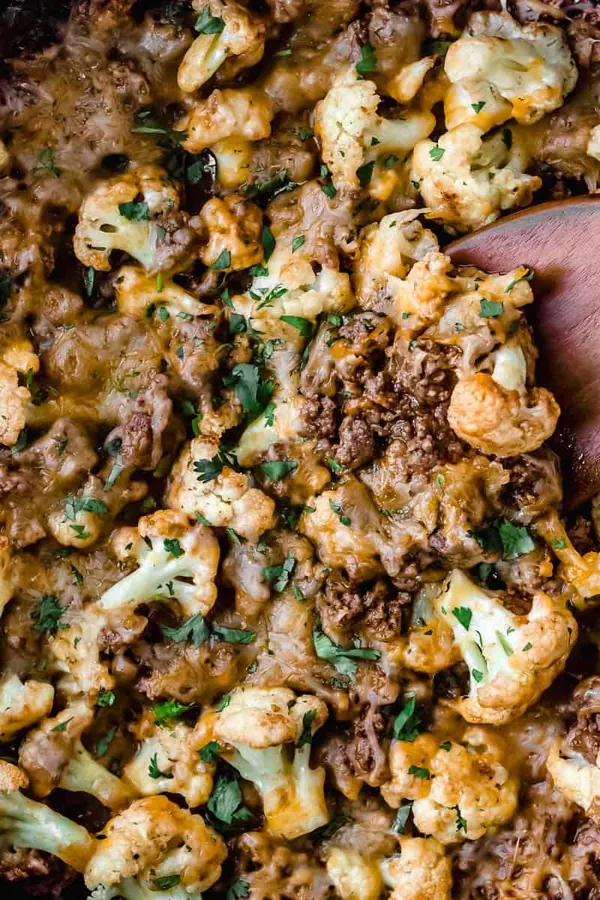 12. Cheesy Barbecue Ground Beef and Cauliflower Skillet