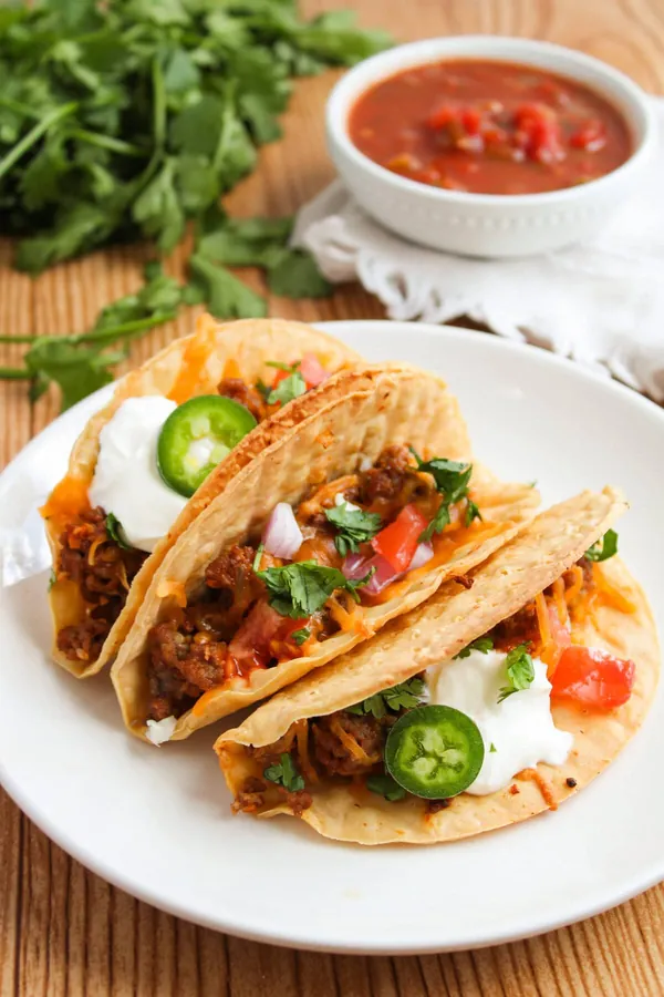 Baked tacos with crunchy shells, tender ground beef, and melted cheese.