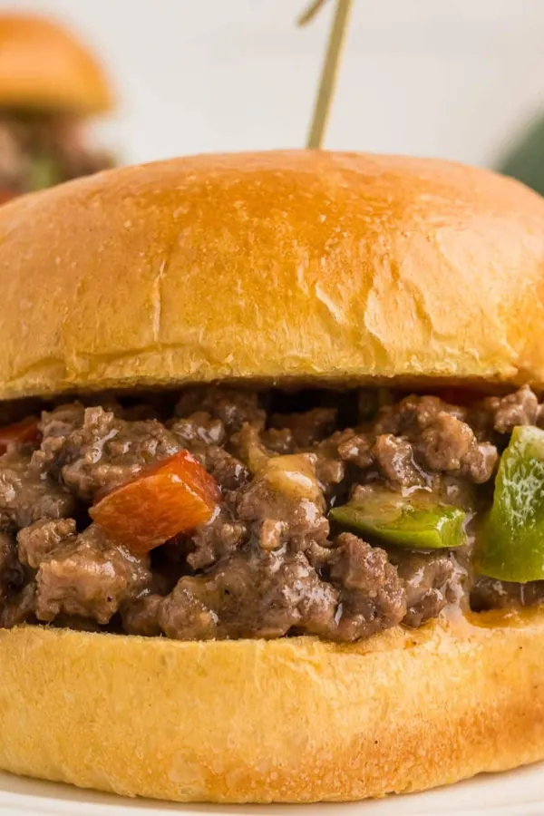 Easy Philly Cheese Steak Sloppy Joes (Ground Beef) deliver a rich, smoky flavor with tender ground beef, sautéed peppers, and onions.