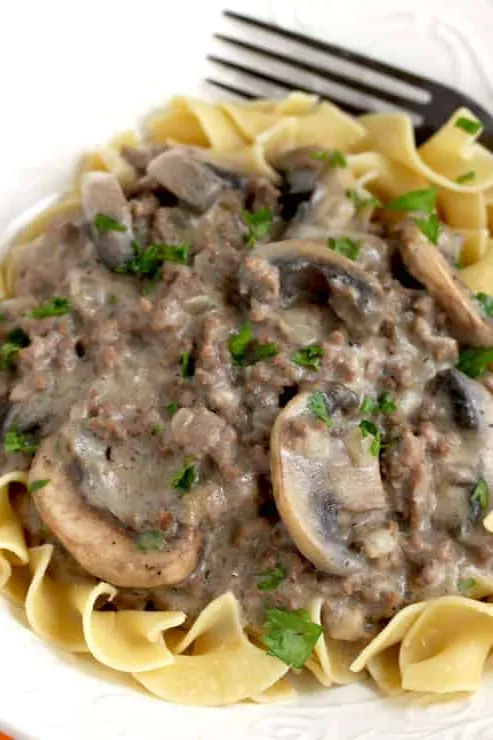 Ground Beef Stroganoff is a creamy, comforting dish with lean beef and mushrooms in a rich gravy.