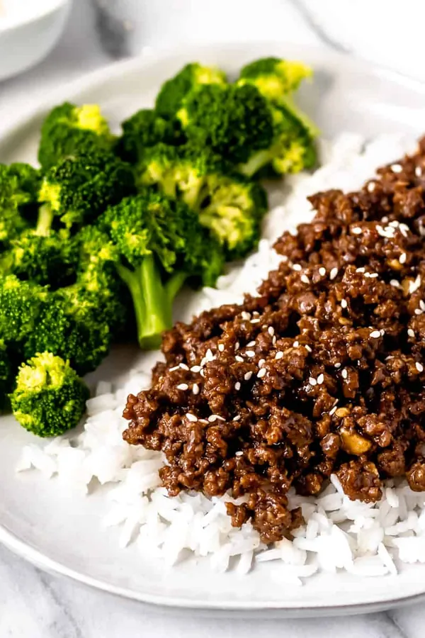 Korean Ground Beef Bowls feature tender beef simmered in a sweet and savory sauce.