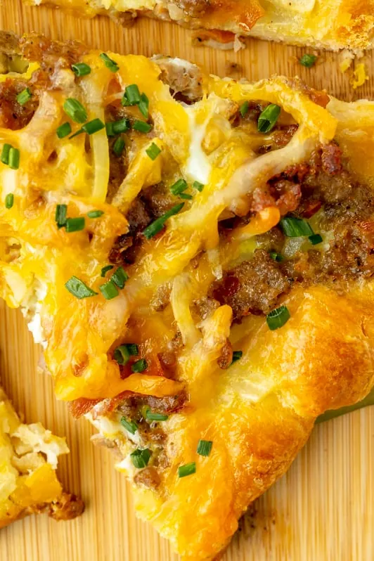 It’s an easy, fun way to enjoy eggs, cheese, and meat on a crispy crust.
