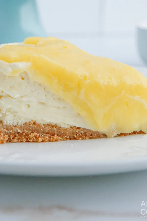 Instant Pot Lemon Curd Cheesecake features a zesty lemon filling with a smooth, tangy topping.