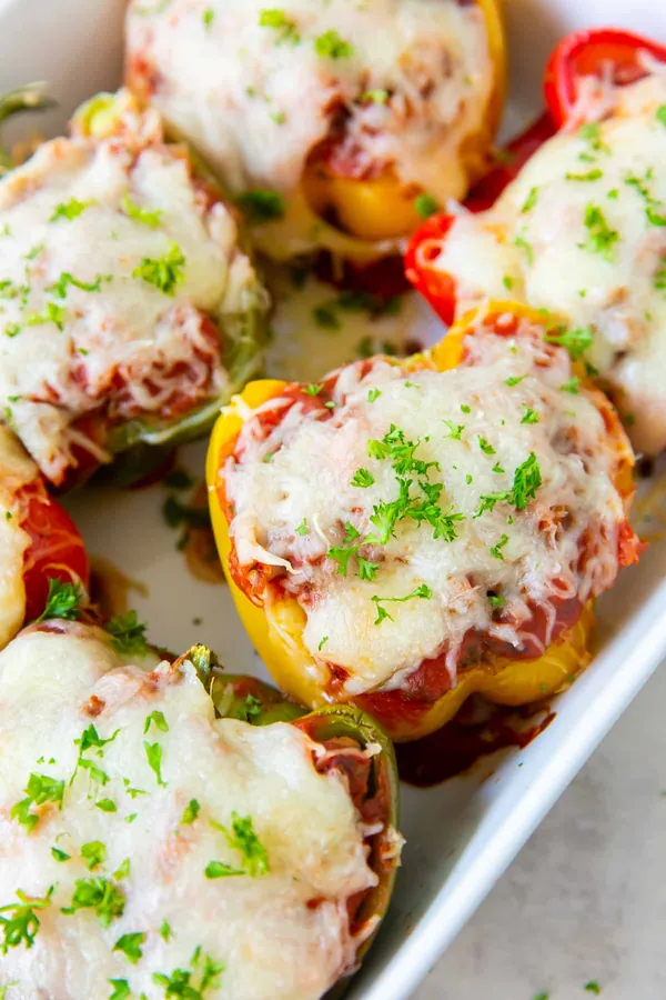 Italian Stuffed Peppers are vibrant bell peppers filled with a tasty mix of seasoned ground beef and rice.