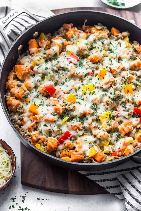 Italian Turkey Sweet Potato Skillet is a hearty one-pan meal packed with ground turkey and sweet potatoes.