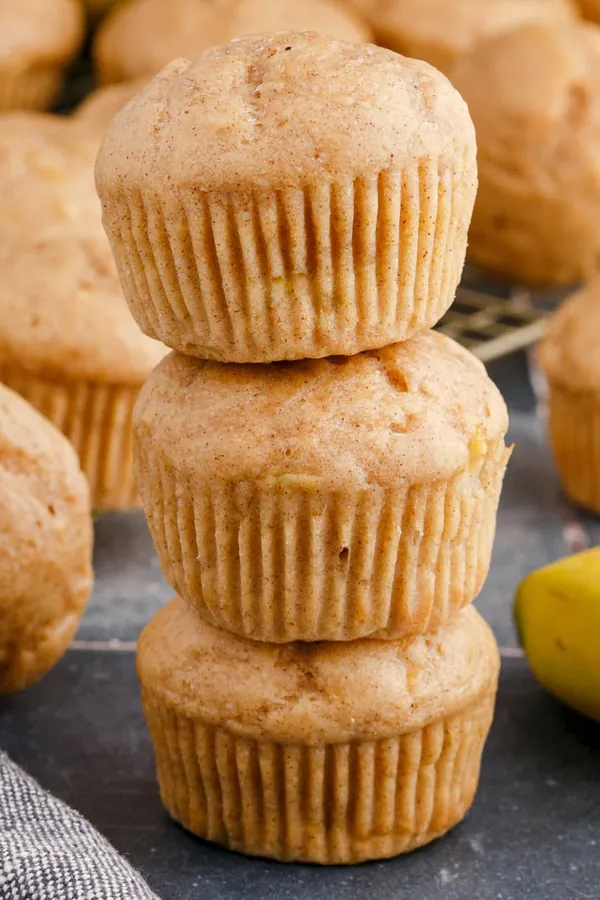 Easy banana muffins are soft, sweet, and made with just three ripe bananas.