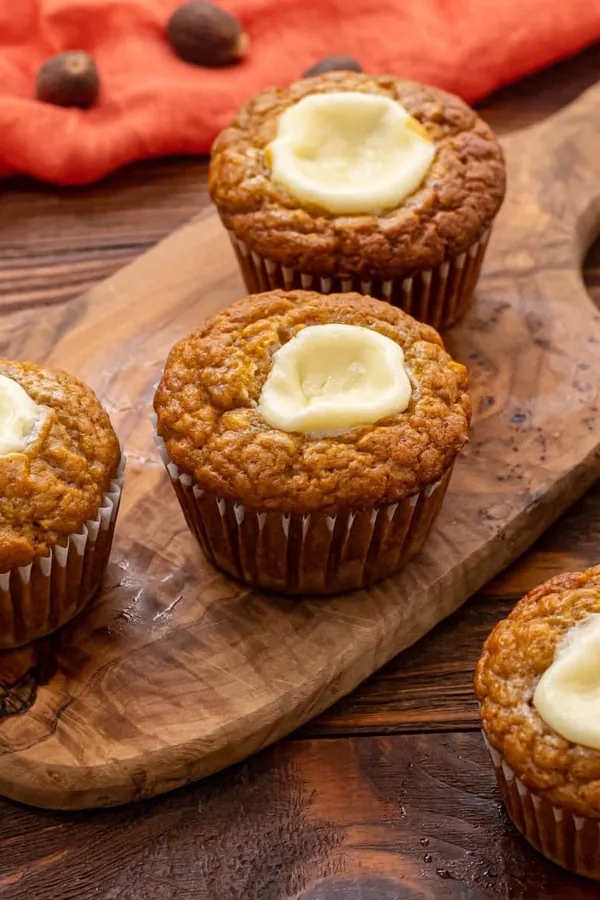 Each muffin has a creamy cream cheese center that pairs perfectly with spiced pumpkin.
