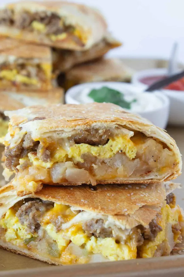They’re packed with scrambled eggs, potatoes, veggies, and melted cheese.