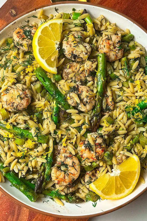 The bright lemon, rich butter, and tender shrimp pair perfectly with the al dente orzo and asparagus.