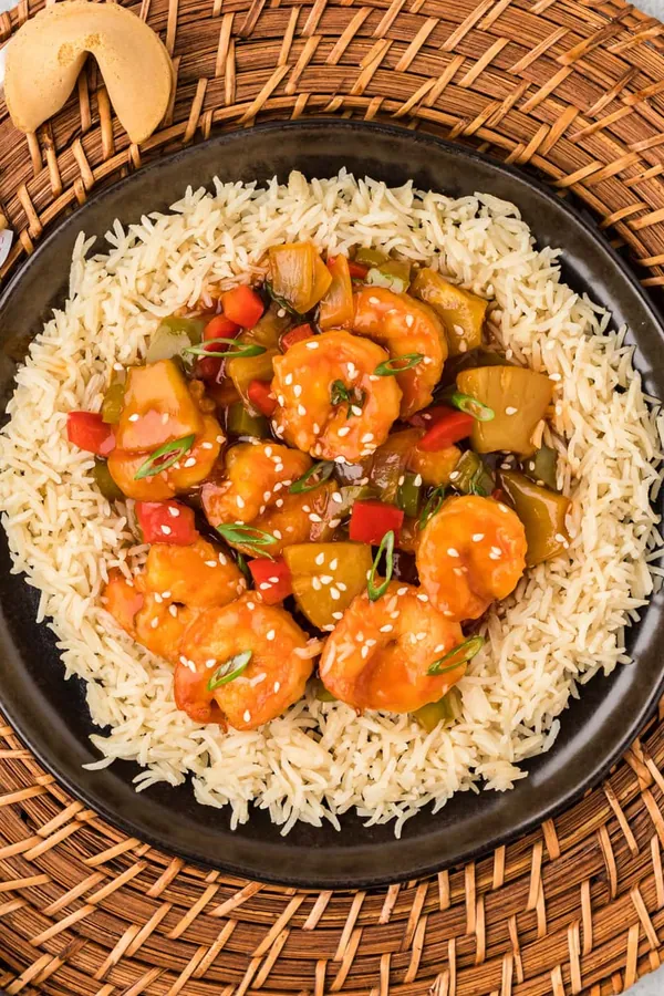 Sweet and sour shrimp offers a crisp, tangy bite with juicy shrimp and tropical pineapple.