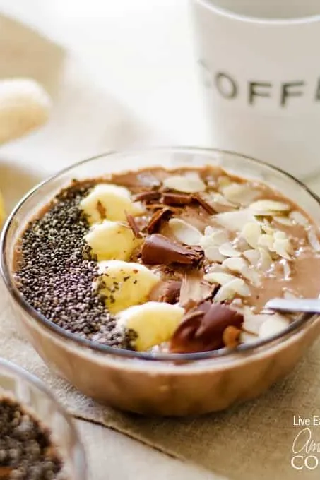 Mocha Smoothie Bowl combines the rich taste of coffee and chocolate in a thick, satisfying bowl.